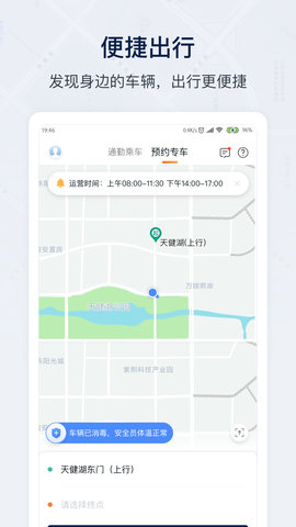 网约巴士app为用户提供便捷、安全、低成本的通勤、网约乘车服务,在指定开放区域可一键呼叫自动驾驶无人巴士”,给用户带来前沿自动驾驶科技新鲜、优质的出行体验。