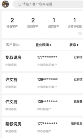 【销售跟踪】系统自动派单,随时处理客户预约看房信息,购房过程全跟踪,客户情况简单明了。
