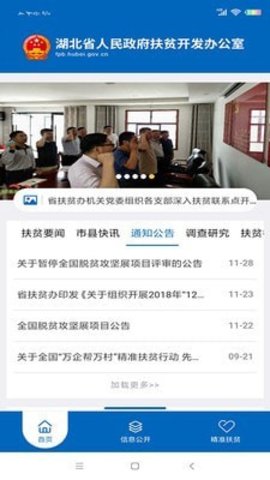 1、湖北扶贫网查询系统APP设有政务动态、社会扶贫、市场扶贫、片区开发等栏目。