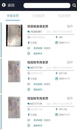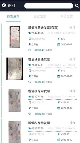 3、待查发票、已过发票、未过发票都能详细记录,可随时查看处理;