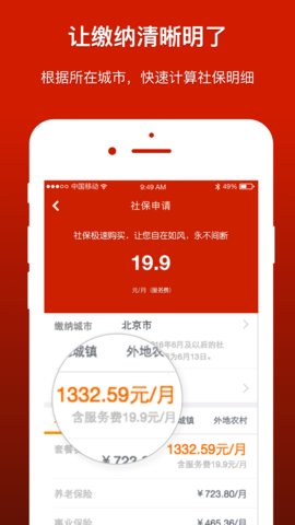 4、社保计算:根据所在城市和工资基数,快速计算出社保缴纳明细,让社保缴得更明白。