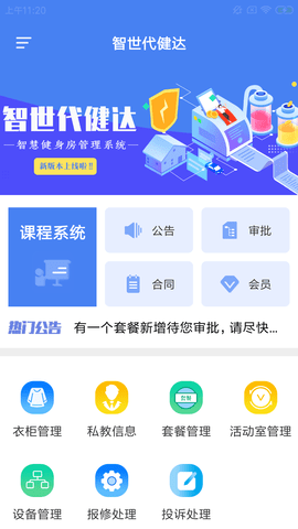 智世代健达app是一款针对健身房工作人员开发的办公软件,通过这款软件用户可以随时掌握店铺数据信息动态,还提供了多种工具,帮助开发潜在学员提升业绩,还有衣柜管理、私教信息、套餐管理、活动室管理等功能,有需要的朋友快来下载吧。