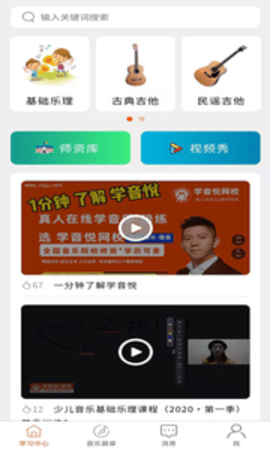 学音乐网校app是学音悦网校推出的在线学音乐app,这里汇聚了大量音乐、乐器教学视频,选择感兴趣的课程,在线学习,享受更便捷的音乐教学服务,提升个人能力