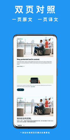 2、提供了独特的双页对照翻译以及双段对照翻译;