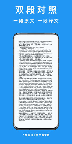 一段原文,一段译文。适用于纯文字文档,例如小说,参考资料等。