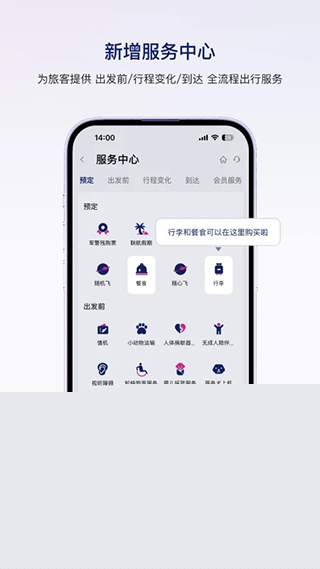 2、行李服务智能预购系统,支持在线测算行李额度、购买超额行李及预填托运信息,减少机场等待时间。