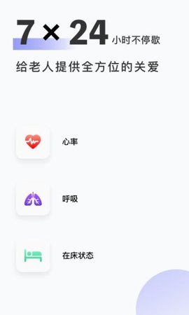 2、通过连接配套的智能硬件设备实时监测被监护者的健康数据,包括呼吸、心率以及睡眠状态等;