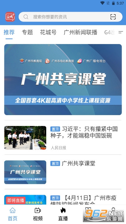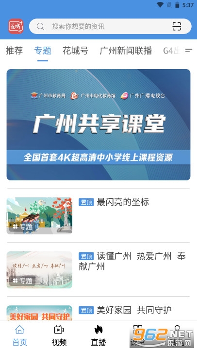 目前“广州共享课程”主要的几种线上学习方式中包括有花城+app的使用,当用户需要使用到其中的共享课程功能时,只需要在主界面找到其所在位置即可,非常的方便。