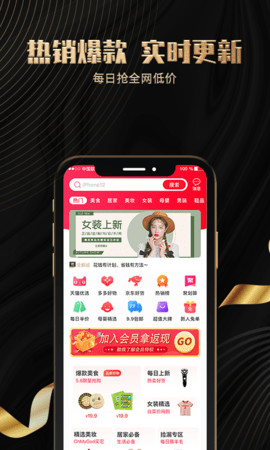 全都返app打造全网省钱购物最优平台,领券更优惠,购物返利更实惠;并提供了天猫优选、多多好物、京东好货、热销榜、聚划算、每日半价、母婴精选、9.9包邮、超值大牌、新人免单等特色频道。