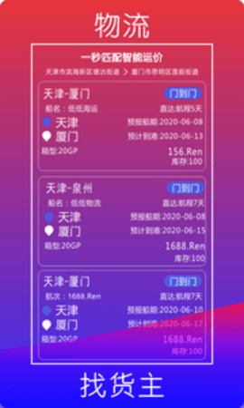 4.一秒匹配运价,简单、快速、有效,为货主提供大数据化时代的集装箱物流新体验。