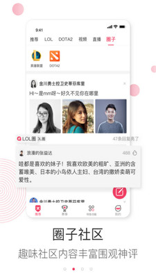 1、专为电竞朋友们打造的资讯分享和社交互动平台,各种实用功能可以体验。