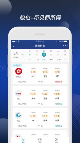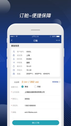 3、全球领先的在线订舱平台,为物流企业提供安全便捷的线上订舱服务,直接手机就可以订购。