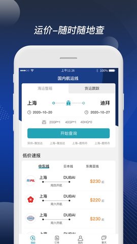 价格动态、货物跟踪、船期变化,都将第一时间推送至客户终端。