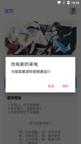 马保国视频通话app一款很有趣的来电模拟软件,可以整蛊朋友,模拟马大师跟朋友对话,欢乐无穷