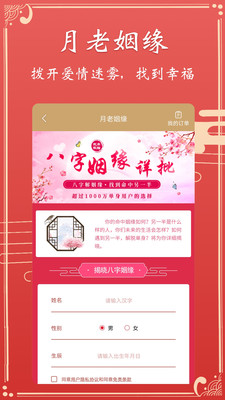 【爱情配对】:通过八字、星座、生肖等进行配对,让你全方位的了解自己的爱情概况。