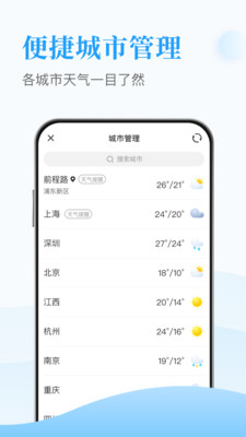 4、各个城市可以一键进行切换管理,便于知晓各个城市的天气