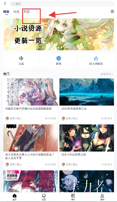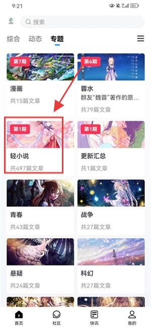 2、选择轻小说进入