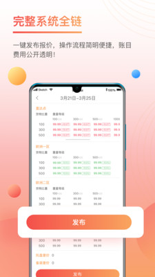 平台不仅提供个性化品牌店铺搭建,帮助供应商树立专业形象,还通过站内免费流量扶持提升曝光度。多账户层级管理满足企业复杂组织架构需求,一键发布报价功能简化操作流程,财务结算模块则确保账目清晰透明。整个App界面简洁、逻辑清晰,即便是初次使用的用户也能快速上手。此外,专业客服团队7×24小时在线,随时解答疑问,保障每一单运输无忧。