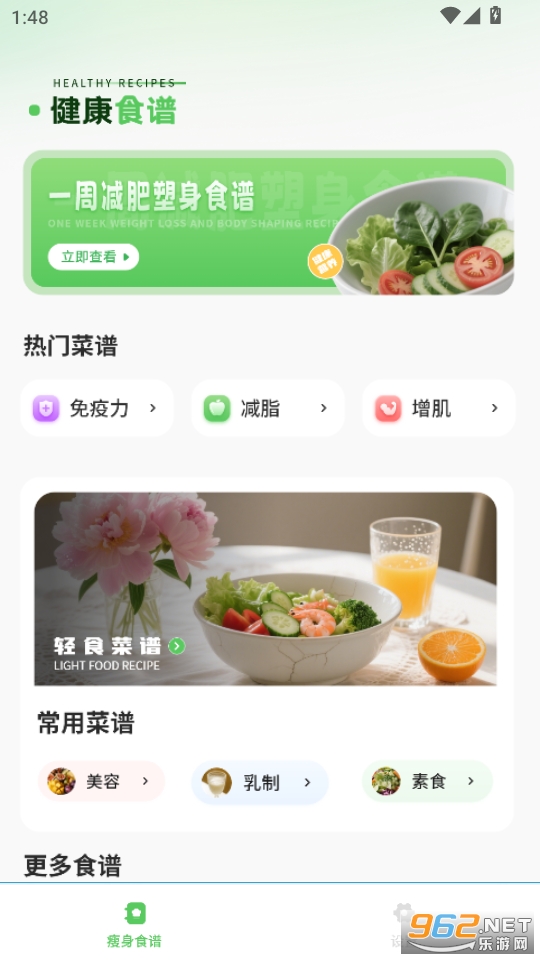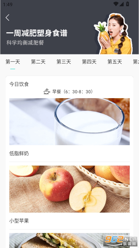 2、进入后可以一看到每天的推荐食谱,可以参考参考
