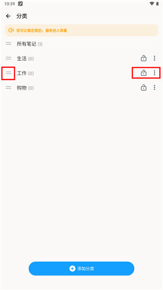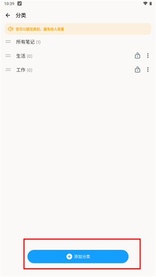 1、主页默认显示三个分类栏,点击末尾的+”号即可新建分类