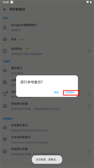 3、点击立即备份”(若备份失败,请检查网络连接后重试)