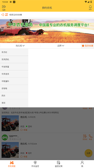 2、在农机调度”中,可根据实际需求选择所需农机类型,精准匹配作业场景。