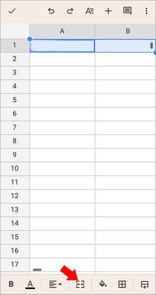 3. 点击底部工具栏中的合并单元格”按钮即可完成操作。