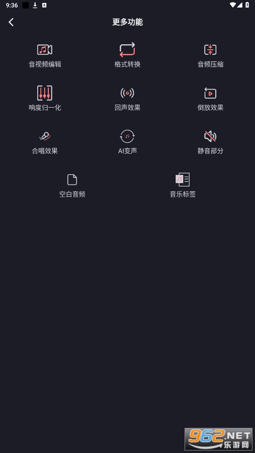点击更多功能,可以查看首页以外的功能,自由选择使用,处理音频