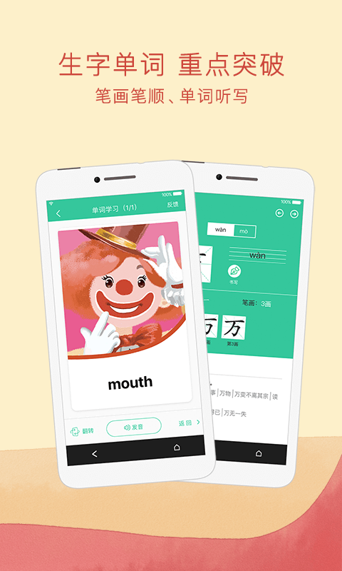 聚焦基础能力培养,特别强化生字书写与单词拼写训练。通过规范的笔画笔顺演示和高频单词听写,帮助学生扎实掌握语言基本功,为后续学习打下坚实基础。