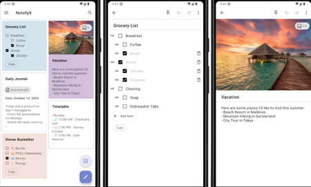 NotallyX不仅简洁,更具备专业级笔记能力。它支持创建包含粗体、斜体、等宽字体及删除线的富文本注释,并可嵌入任务列表与子任务,帮助你高效管理待办事项。你还能为笔记添加图片、PDF等任意类型文件,使其内容更加丰富立体。