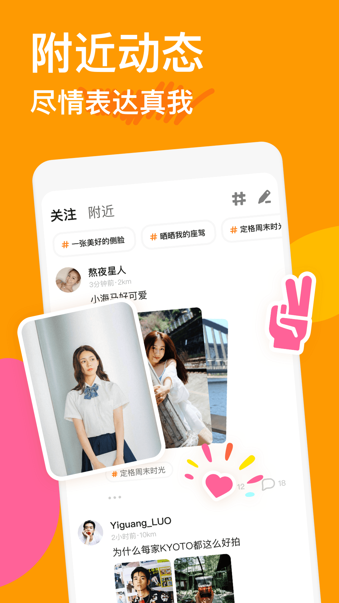 发布附近动态”,像朋友圈一样自由展示生活点滴,真实表达自我,吸引同频之人。