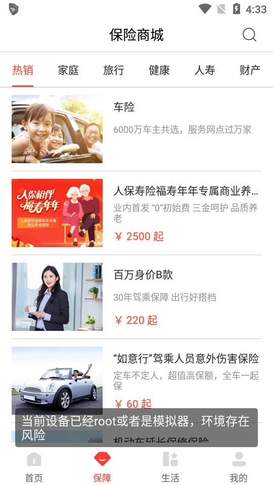 保险商城:涵盖车险、意外险、旅游险、家财险、责任险、医疗险、重疾险等丰富产品,投保流程简洁高效,支持自助下单。