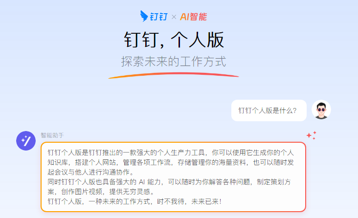 钉钉个人版,一种面向未来的个人工作方式,现已到来。立即下载,开启你的智能办公新篇章!