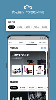 服务”板块整合了预约保养、维修、道路救援等全方位售后支持,同时打通BMW官方电商平台,涵盖新车商城、售后配件商城及互联驾驶服务商城,购车、养车、升级服务一应俱全。