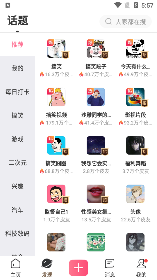 兴趣话题:超过10万个细分兴趣话题,从冷门爱好到热门潮流,总有一款适合你。无论你喜欢什么,在皮皮都能找到同好圈子。在皮皮,所有冷门爱好都能找到同好~”——皮皮某神秘官方
