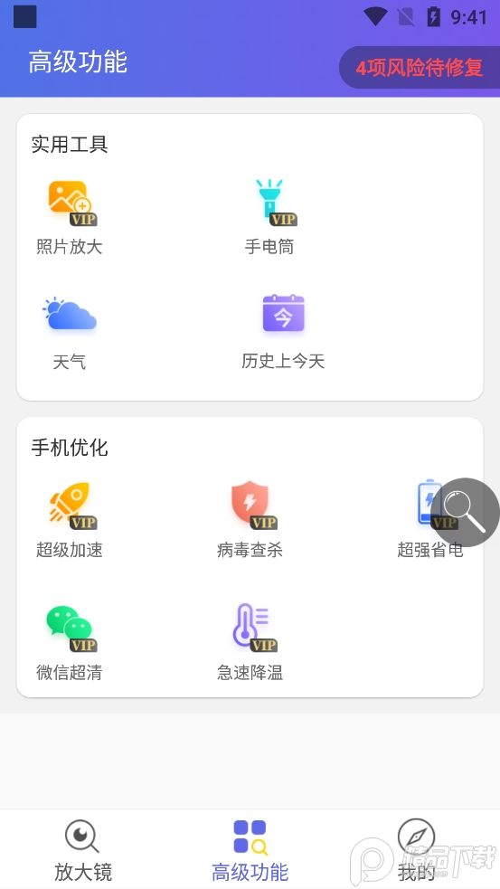 本应用提供多项贴心功能:基础放大镜、屏幕文字放大、实时摄像头放大、天气查询及历史上的今天”资讯均免费开放;而照片增强放大、LED手电筒照明、手机性能优化等高级功能则需开通VIP会员方可使用。我们坚持基础功能全免费”原则,确保每位用户都能无障碍享受核心服务。