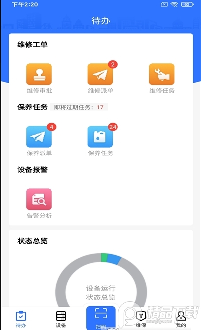 维修保养:内置标准化的维保流程,用户可在线创建、跟踪和完成保养与维修任务,系统自动推送待办事项,确保设备维护不遗漏、不停滞。