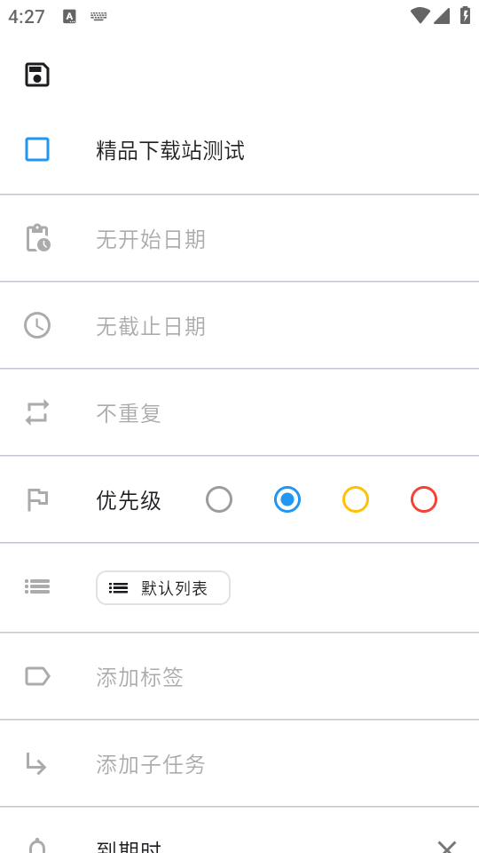 下载并打开 Tasks 应用后,点击底部的+”按钮,即可进入任务编辑界面。在这里,你可以为任务命名,并设置开始与截止日期,确保重要事项不会被遗漏。你还可以自定义提醒次数,让系统在关键时刻准时通知你。完成设置后点击保存,任务便会立即出现在主列表中,助你有条不紊地推进每日计划。