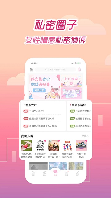 更有1.2亿姐妹在这里分享他们的经期护理窍门、成功备孕经验、两性态度和健康生活瞬间,热情互帮互助、答疑解惑。那些不好意思问别人的羞羞问题,在这里可以安心地向姐妹们提问,收获最中肯有用的经验和建议哟!