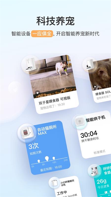 小佩宠物app深度融合智能硬件与移动应用,打造从饮食、清洁到健康管理的全链路养宠解决方案。通过连接小佩智能喂食器、智能猫砂盆等设备,即使你不在家,也能远程掌控宠物的日常起居,确保它们按时吃饭、如厕洁净、作息规律。