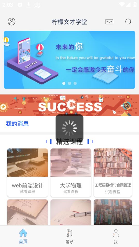 1、首先下载并安装柠檬文才学堂app,使用个人账号完成注册与登录。