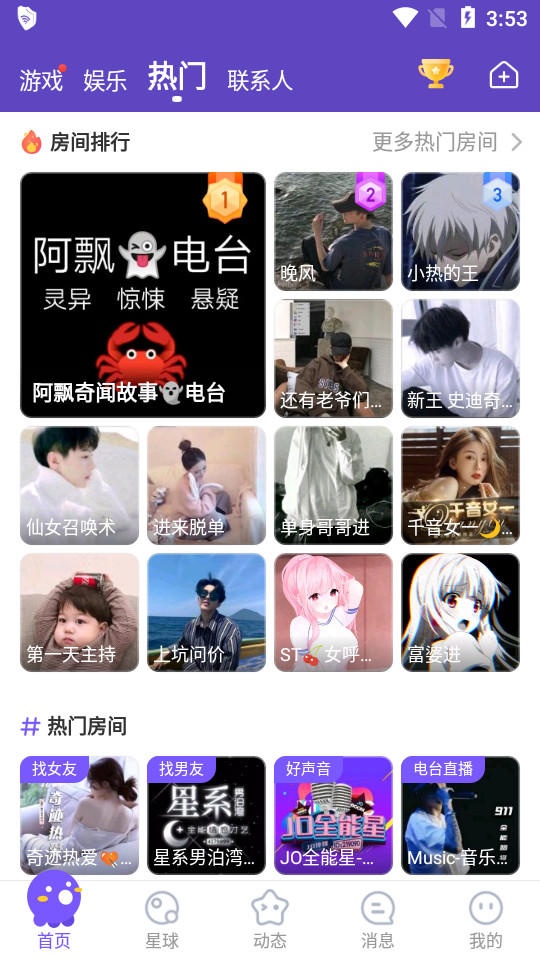 【灵魂交友,以声会友】 在娱乐语音房间中,抛开颜值滤镜,用声音交朋友。无论是声音恋人”的温暖对话,还是Pia戏房里的角色飙戏,都能让你沉浸于纯粹的声音社交体验,遇见那个只听声音就心动”的人。