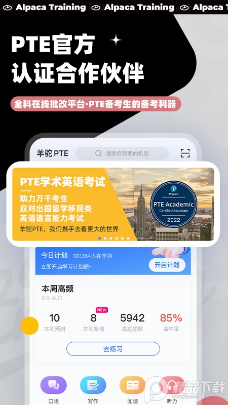 羊驼PTE真题练习app是一款专为PTE(Pearson Test of English)考生量身打造的高效备考工具,集AI智能评测、高频机经更新、全题型题库与高分经验社区于一体。无论你是初学者还是冲刺高分的进阶用户,这款应用都能为你提供精准、系统、高效的英语学习路径,助你轻松拿下PTE高分,迈向留学或移民目标。