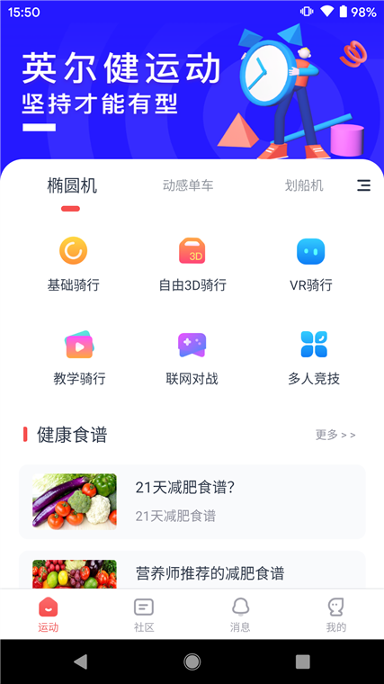英尔健运动App——不止是健身工具,更是你的私人教练、竞技伙伴与健康管家。这款智能运动应用深度整合硬件设备、专业课程与沉浸式体验,让你在家也能享受健身房级训练效果。无论你是骑行爱好者、力量训练新手,还是追求高效燃脂的上班族,英尔健运动都能通过精准数据追踪、个性化计划与趣味互动场景,让每一次锻炼都目标明确、过程有趣、成果可见,助你轻松养成持久运动习惯。