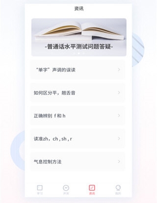 下载安装后,注册登录即可开启普通话提升之旅。首页推荐每日一测,快速检验学习成果;核心备考区提供结构化训练内容;评测中心支持真题模拟与成绩分析;资讯板块则汇聚最新考试信息与学习干货。操作简洁,功能清晰,新手也能快速上手。