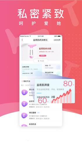 2. 盆底肌修复:连接专用修复仪,智能生成评估报告,定制专属康复方案并推送提醒,助您养成规律训练习惯。