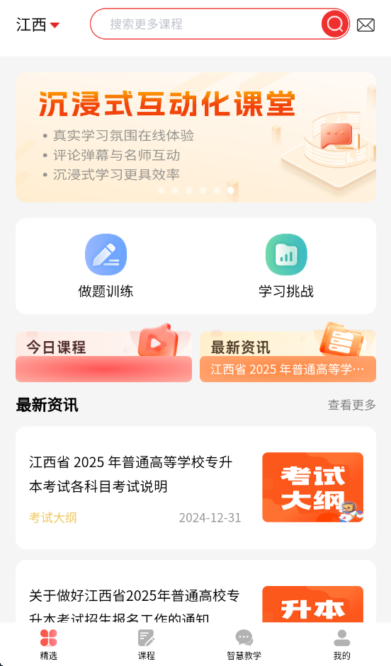 1、登录后首页即显示当前所选城市的最新专升本报考资讯,政策动态一手掌握。