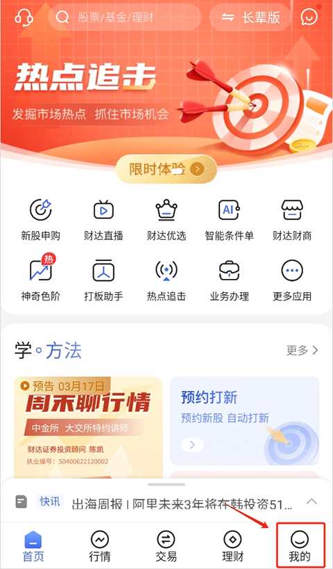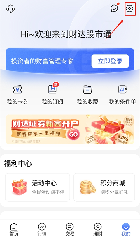 1、打开财达股市通app,进入底部菜单栏点击我的”。