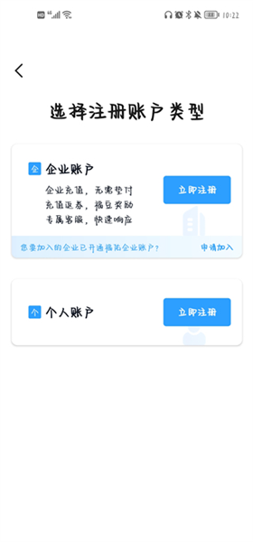 2、用户还可以选择注册账号的类型,有企业账户和个人账户两种选择。