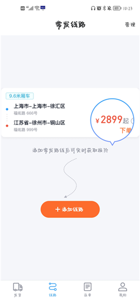 6、点击进入路线,用户可以添加自己常用路线,这样就可以获取实时报价啦。